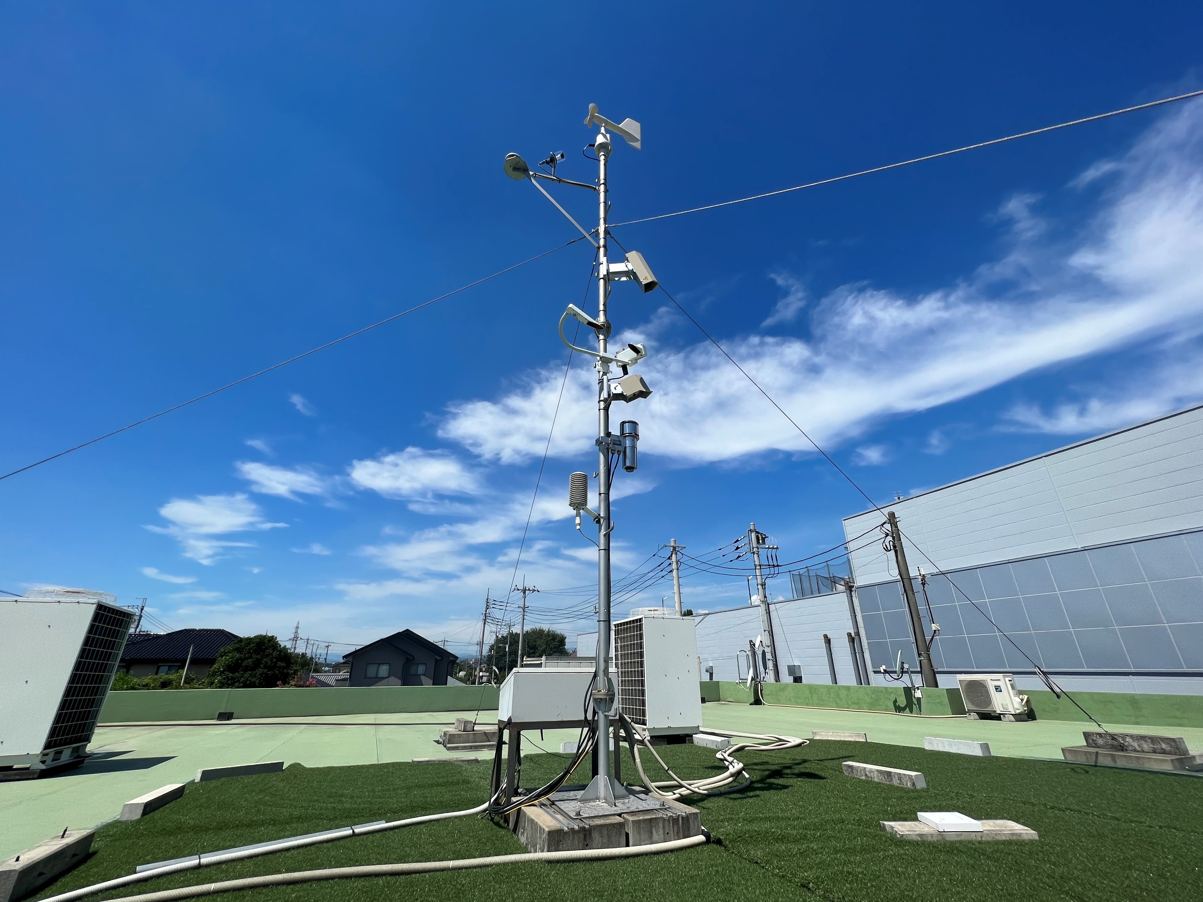 観測に用いる気象測器は主に社屋屋上に設置されています。観測設備には定期的に保守点検を実施しており、所期の性能が保たれるよう努めています。なお、雨量計/温度計/湿度計/風向風速計/日射計/気圧計については「気象測器の検定」が有効な機材を用いており、必要に応じて随時更新しています。